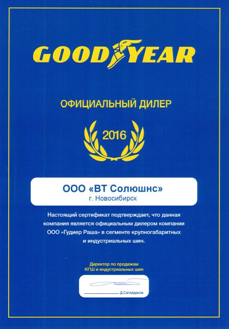 Уважаемые партнёры! Рады сообщить, что наша компания получила статус официального дилера компании GoodYear — одного из крупнейших производителей шин.